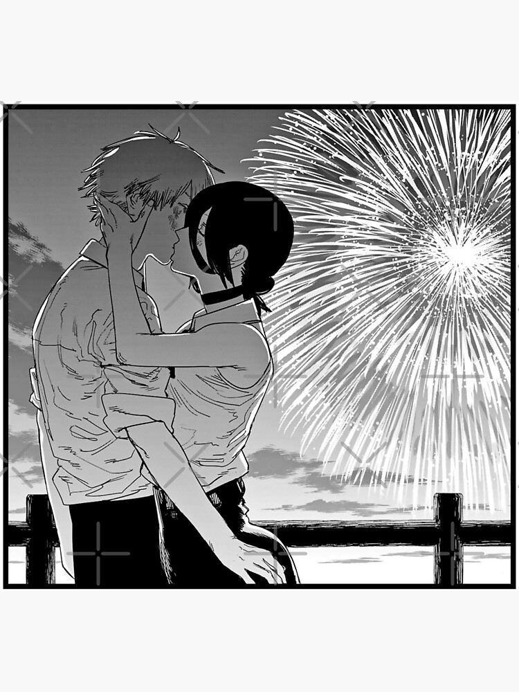 C’est à ce moment-ci qu’à l’occasion d’un festival, Reze va proposer à Denji de s’enfuir avec elle pour le sauver. Denji va alors refuser parce que finalement, sa vie se passe bien et s’améliore et que si on le retrouve on le tuera, il est toujours finalement traité comme un chien. Reze va objecter qu’elle l’aime. Denji ne sait pas vraiment quoi répondre, mais réponds néanmoins aux sentiments de la belle Reze. Et alors qu’elle accuse Denji d’aimer quelqu’un d’autre, elle va embrasser Denji. C’est là, le premier baiser de Denji sous un magnifique feu d’artifice, une scène absolument magique…